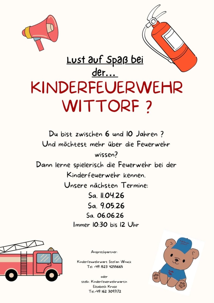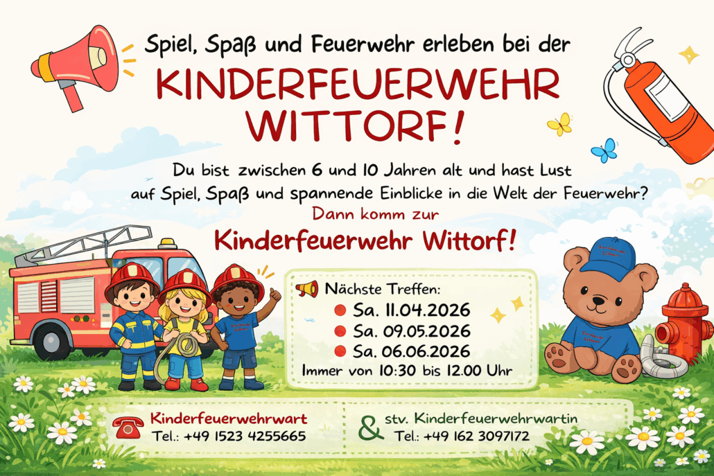 Du zählst sechs bis zehn Jahre und suchst nach Action bei der Feuerwehr? Besuch uns in Wittorf.